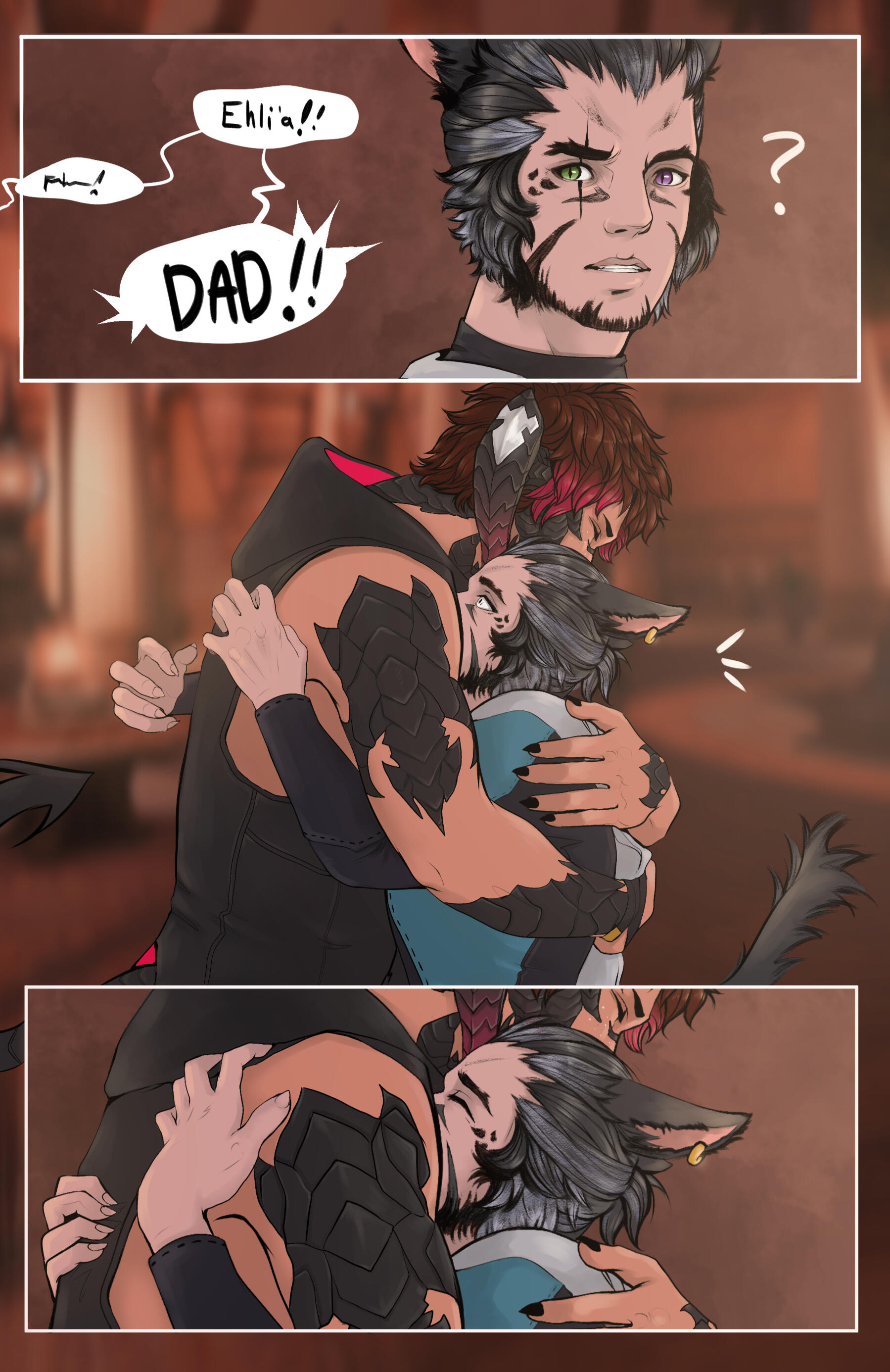 THE BLOODY BANQUETEhli'a hated the Crystal Braves.While Khal was pulled in every direction at the whims of the Scions, Ehli’a helped with the arrival and resettling of the Domans. All the while, he kept a critical eye on the development of Alphinaud’s Grand Company. Ehli’a was far too new to the Scions to hold much sway in their workings, but he voiced his concerns to Khal several times. Ehli’a had other concerns as well, namely how Khal had been running himself ragged to fight an endless slew of primals and take on an absurd amount of side quests, but he knew that particular criticism would be unwelcome to his newly independent son. So he held his tongue.He wished he hadn’t.The Keeper of the Lake upended everything. Midgardsormr struck at something deep in Khal–the growing realization that his desire to be a hero was backed by no real convictions or beliefs. Khal jumped at every opportunity to prove himself a hero, taking any job and any direction from those he believed knew better. This also worsened his already strained relationship with Alphinaud, as Khal began to distance himself in an attempt to establish his own autonomy as the Warrior of Light. He feared that he was seen as more of a weapon than a person, feared he wasn’t actually doing any good at all, but he still lacked the strength to voice these concerns–or any vulnerable feelings at all–to anyone else. He declined to even reveal his lost Echo to Minfilia or Ehli’a. After Moenbryda and Wilred and the Ascians– everyone had enough to deal with anyway.The Bloody Banquet was an absolute shattering point. Khal had been excited about the event–it was something of a homecoming. He stopped by his parent’s house beforehand to see his mother, Uhzu, and younger sister, Lihla, and Ehli’a accompanied him to the banquet. Khal assured himself that this was proof he wasn’t on the wrong path, that he was truly making a positive difference in the world... and then everything went completely wrong. The Sultana dead, his allies lost, his family endangered, accused of regicide in his own city; Khal barely made it to Camp Dragonhead before he broke down in a mortifying way. Haurchefant risked everything to offer him aid and Khal repaid him with a display of ugly, gasping, humiliating tears. His dream of being a hero was dead.