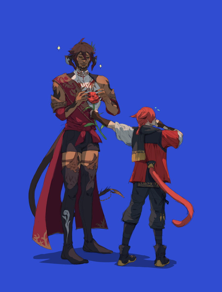 THE CRYSTAL TOWERG'raha Tia’s first impression of Khaliun was, truthfully, a little underwhelmed. He had heard of Khal's recent exploits and was excited to meet this Warrior of Light. However, in person, Khal was quiet and unassuming. Were it not for the rarity of seeing a Xaela in Eorzea, G'raha would not have picked him out as the famed adventurer at all. He didn't have much of a mind for history or books and didn't even realize G'raha had been the one teasing him throughout his quest to collect the aethersands. Their relationship started on the wrong foot, awkward and with mismatched expectations.Khal, however, almost instantly developed a crush on G'raha. He was taken in by the Miqo'te scholar's passion and enthusiasm, easily charmed by G'raha's confident performance. Khal's lack of experience with personal relationships left him falling hard and fast into puppy love and he wasn't adept enough at managing those emotions to reign in his feelings. So he pined desperately, too shy and uncertain to voice his affection, and tried to silently impress G’raha with his fighting abilities.Over the course of exploring the Tower, G'raha did begin to develop a genuine fondness for Khal. He realized that Khal was incredibly sincere and interested in helping G'raha succeed. Despite not comprehending a lot of Allagan history, Khal was a good listener and didn't mind letting G'raha talk for bells about what they might find in the Tower. He shared in G'raha's excitement and routinely offered to help G'raha with small tasks. They enjoyed each other's company and spent many nights looking at the Tower from their camp in Mor Dhona.It was Khal's first crush and an excellent distraction from the increasingly more complicated political dealings of the Scions. The more that G'raha began to reciprocate the attention that Khal was giving him, the more Khal began to believe he might actually have a chance at a real relationship–but then G'raha sealed himself inside the Crystal Tower.Khal was absolutely devastated. On one hand, he understood that they both had responsibilities larger than themselves and that this was not a personal failing. He realized that if he intended to keep being the Warrior of Light he too would have to make sacrifices and sometimes give up his own happiness for the greater good. But also… he was eighteen years old and just had his first real heartbreak. He let that bitter hurt fester. He felt stupid that he thought someone might actually be interested in him, ashamed of the self delusion and private fantasies. All those harbored feelings were ripped away so suddenly and he had been too much of a coward to at least confess them before G'raha closed the door–maybe then he would have felt more closure.Embarrassed by his own emotions, he buried them deep down and threw himself back into Scion work. Killing primals came far easier to him than attempting to navigate interpersonal relationships anyway. He never told anyone that he was close to G'raha. The Scions didn’t notice anything wrong with him, he just seemed as quiet as ever.